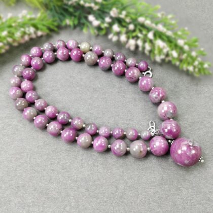 - 925 Silver Necklace, b, Beads Necklace, Melon Beads, Oval, Oval Shape, Oval Shape Ruby, Plain, Plain Beads, Purple Ruby, Purple Sapphire, Red, Ruby, Silver Necklace, sterling Silver (2)