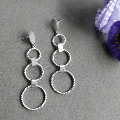 Handmade Brass Silver Plated Push Back Stud Cocktail Earring
