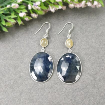 Natural Quartzite Sapphire Gemstone 925 Sterling Silver Hook Earring