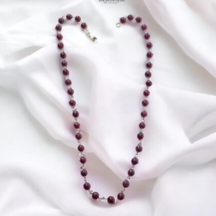- 925 Silver Necklace, b, Beads Necklace, Melon Beads, Oval, Oval Shape, Oval Shape Ruby, Plain, Plain Beads, Purple Ruby, Purple Sapphire, Red, Ruby, Silver Necklace, sterling Silver (2)