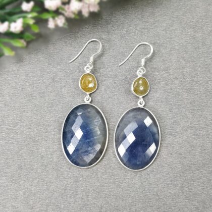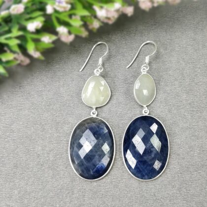 Natural Quartzite Sapphire Gemstone 925 Sterling Silver Hook Earring