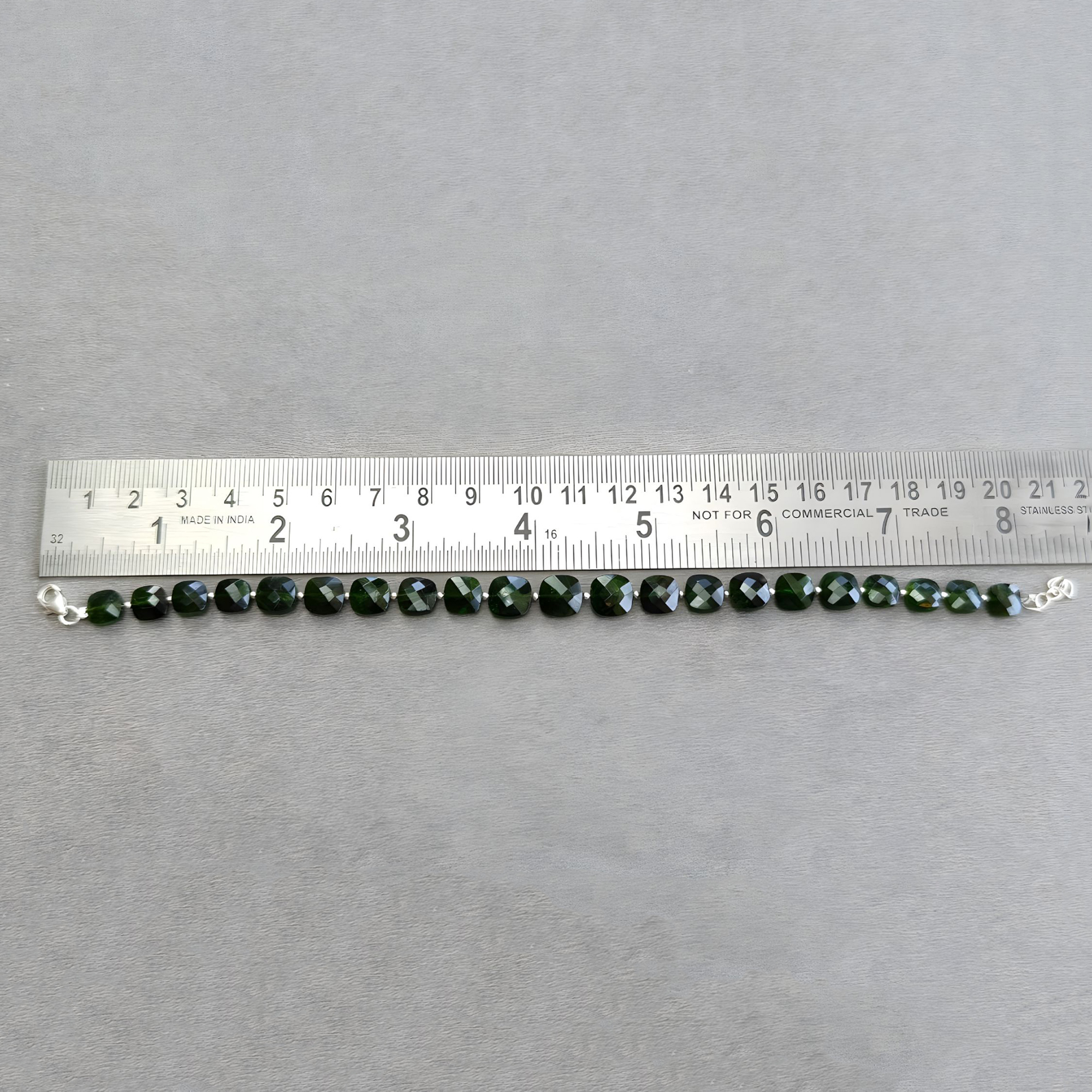 11.02gms Natural Green Chrome Diopside Gemstone Checker Cut Cushion Shape 925 Sterling Silver Beads Bracelet 8″