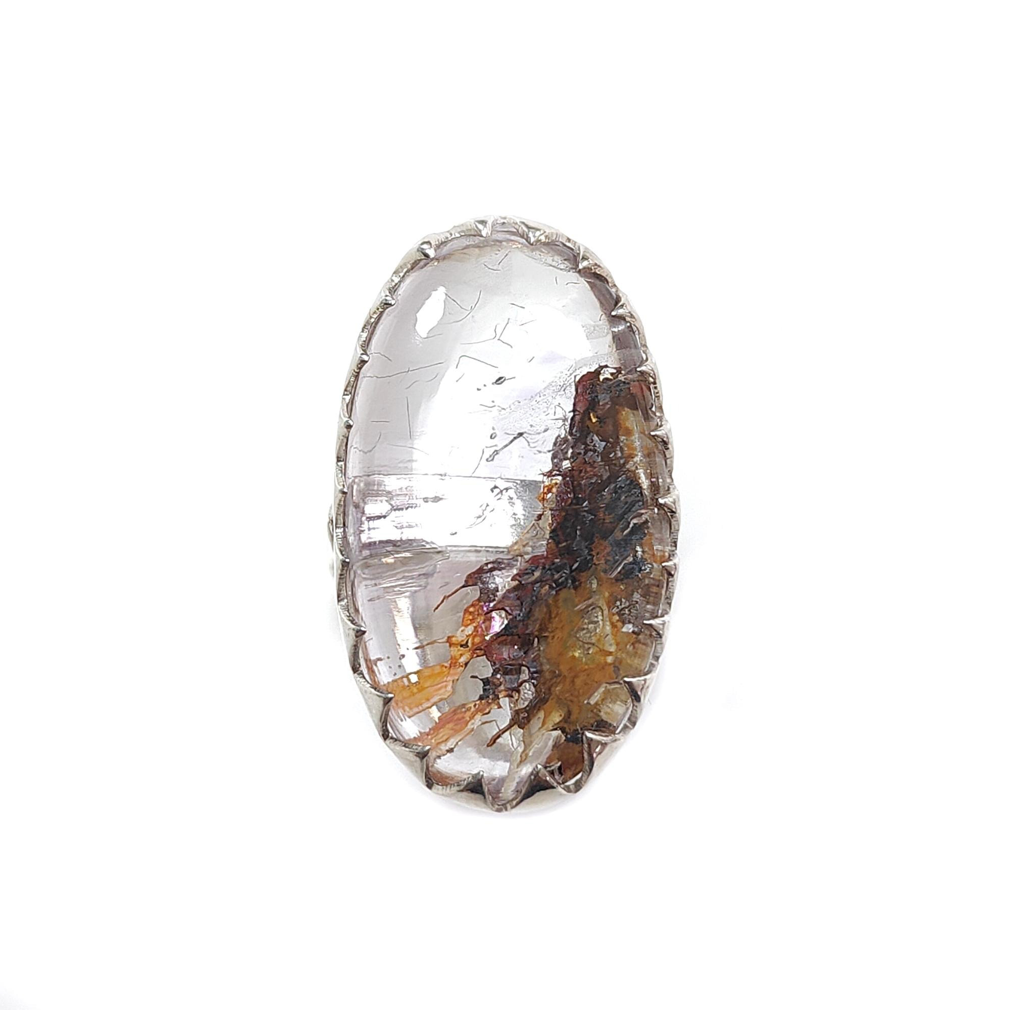 13.60gms Natural Super Seven Amethyst Gemstone Oval Shape Plain 925 Sterling Silver Bezel Set Adjustable Ring