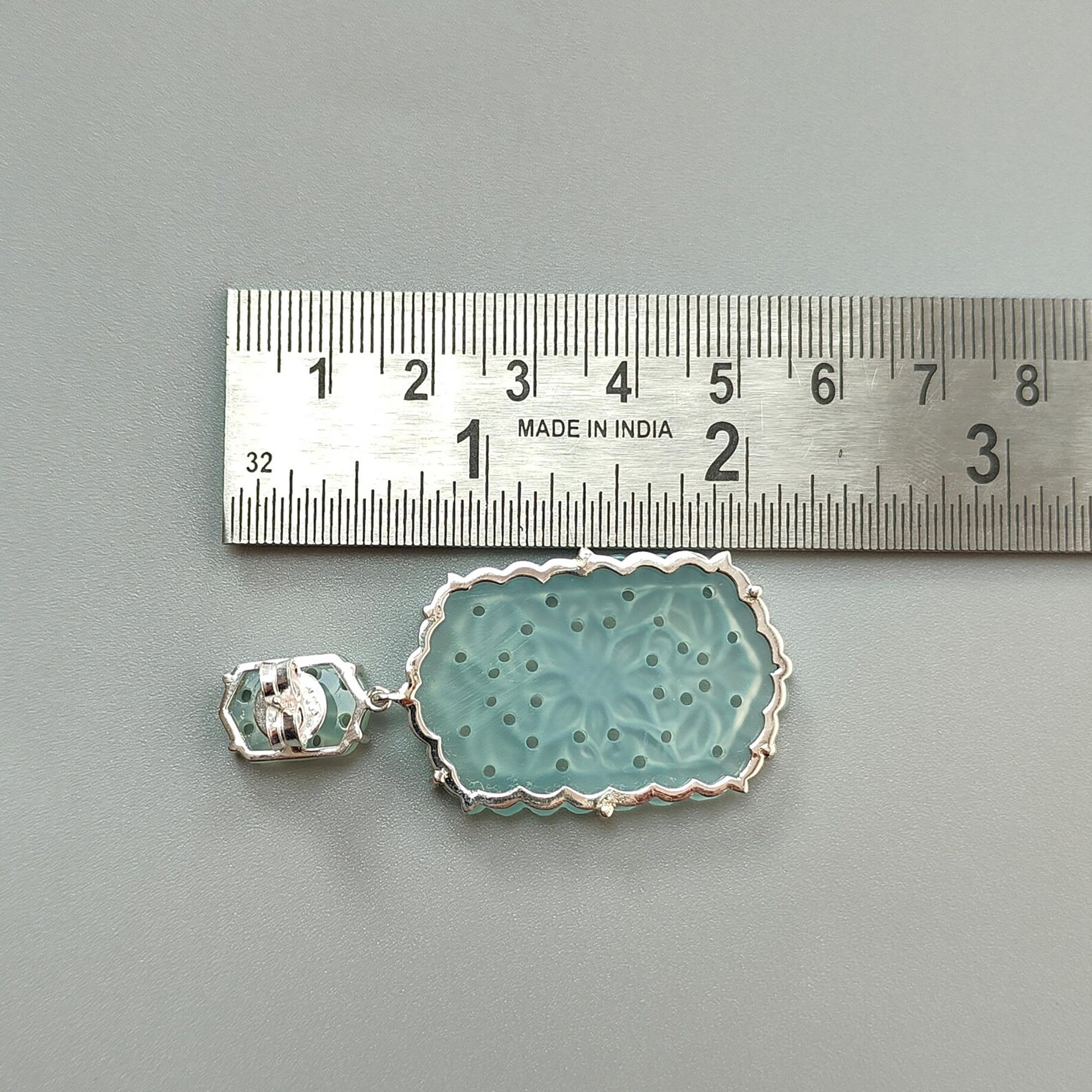16.16gms Natural Blue Onyx Gemstone Carving Hexagon 925 Sterling Silver Prong Set Push Back Stud Earring 2.30″