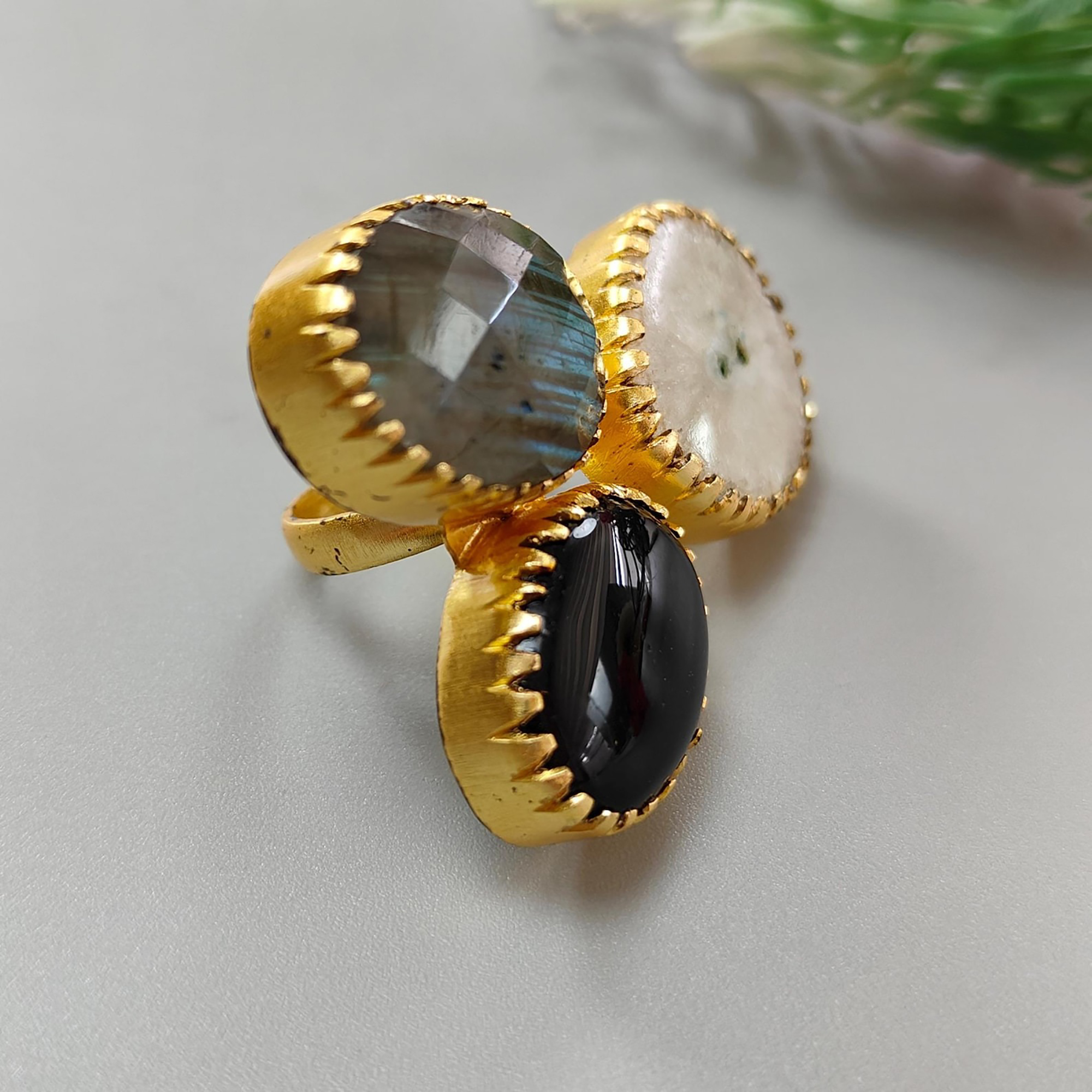 Home » Shop » Boho Style Adjustable Brass Ring With Gemstone