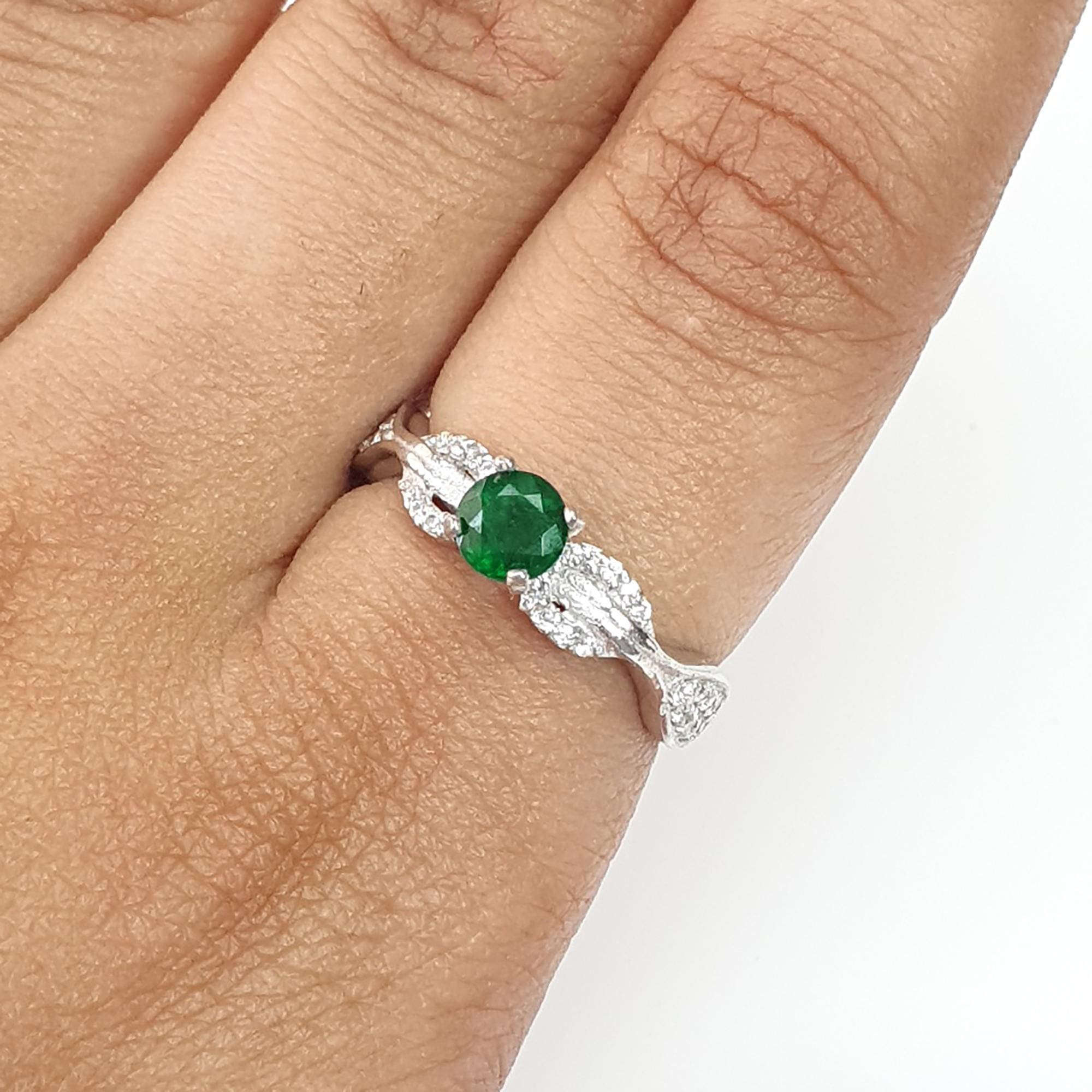2.19gms Natural Untreated Emerald Gemstone Round Faceted 925 Sterling Silver CZ Prong Set Ring 6.5 US
