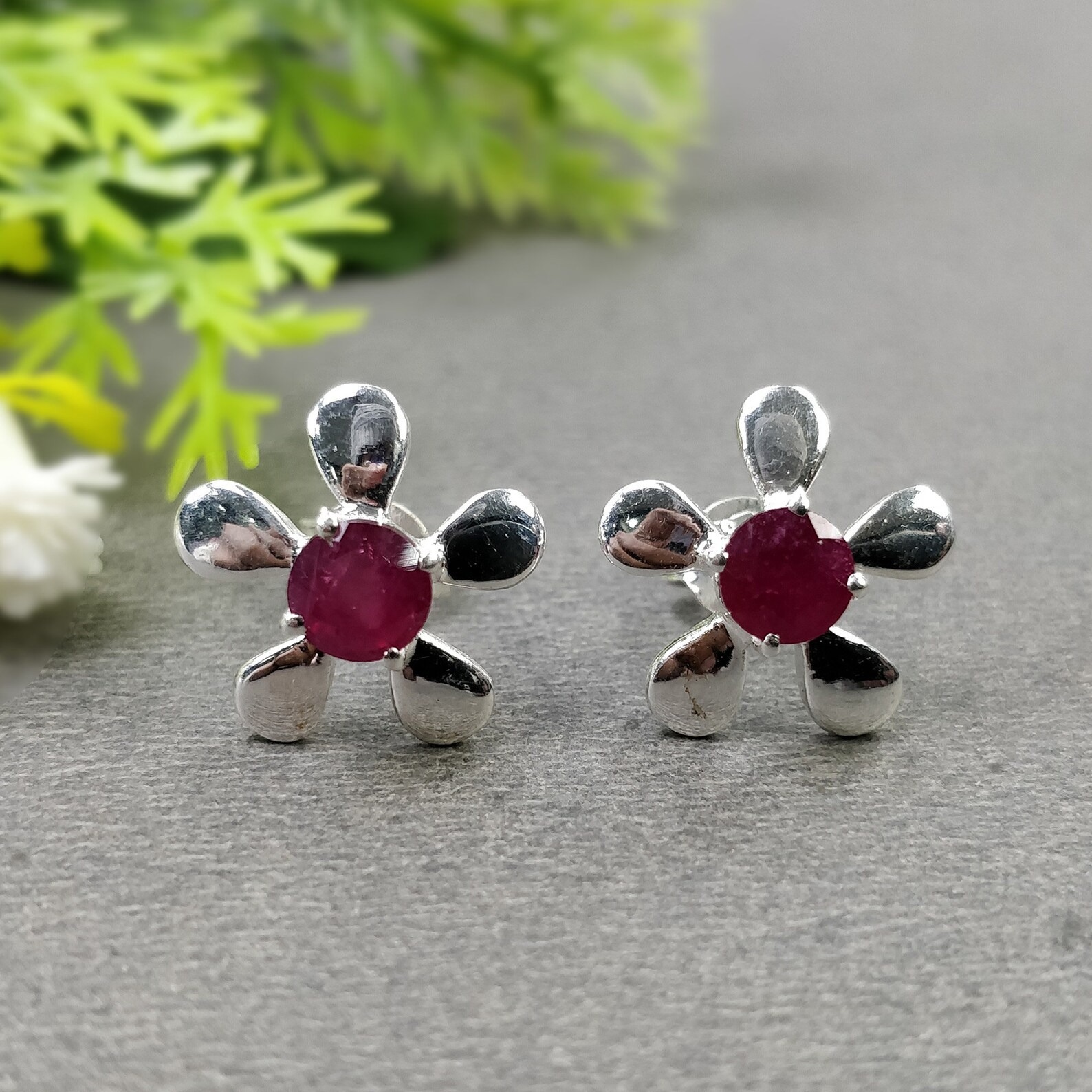 2.50gms Natural Glass Filled Ruby Gemstone 925 Sterling Silver Prong Set Push Back Floral Stud Earring 0.5″