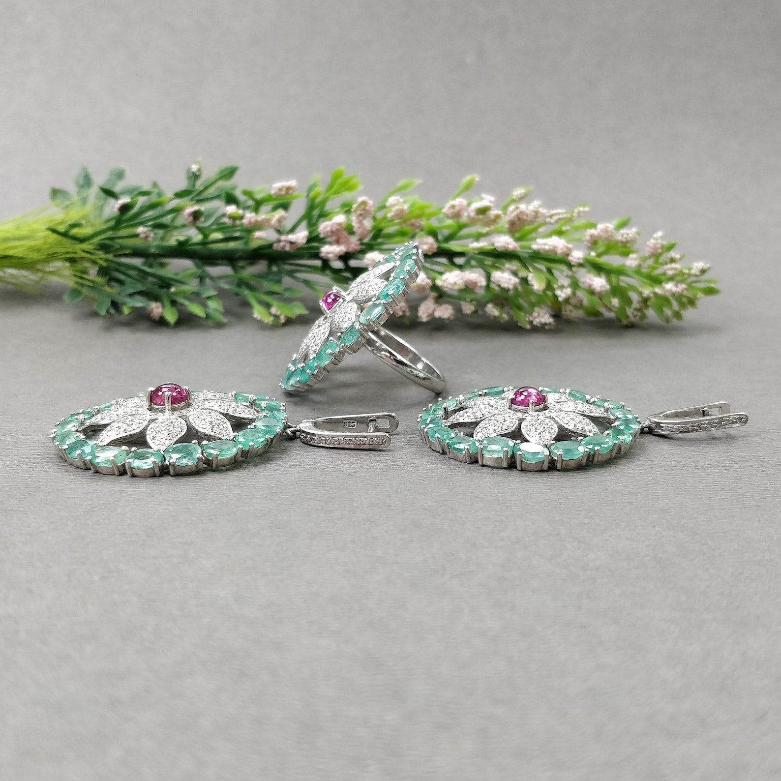 Jewelry Type: Silver CZ Earring, Ring Jewelry Set