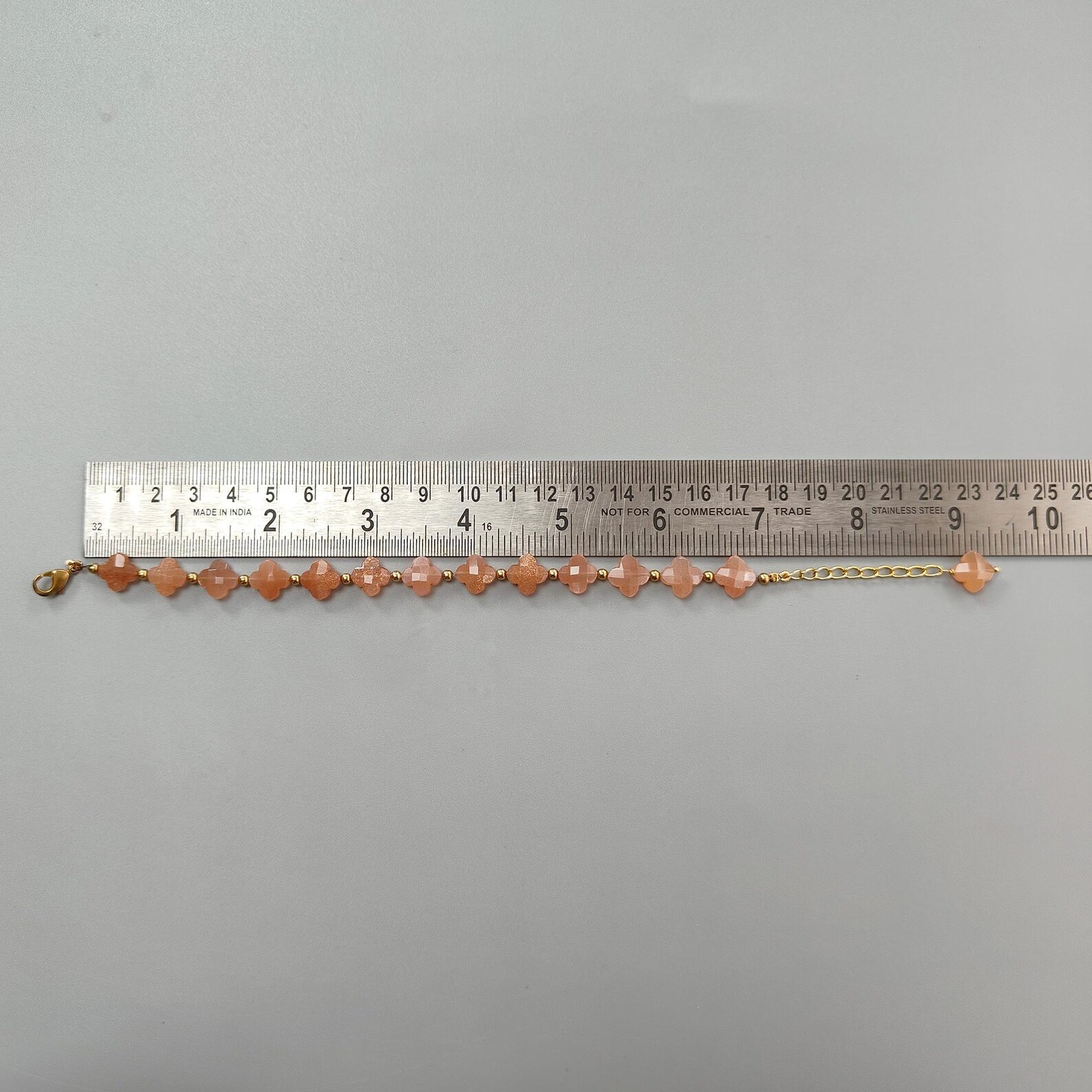 45.00cts Natural Untreated Peach Moonstone Fancy Both Side Faceted Cut Brass Beads Bracelet 9mm 6.50″