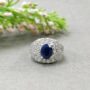5.45gms Natural Blue Sapphire Gemstone CZ 925 Sterling Silver Round Faceted Cut Fine Prong Set Ring 6.75 US