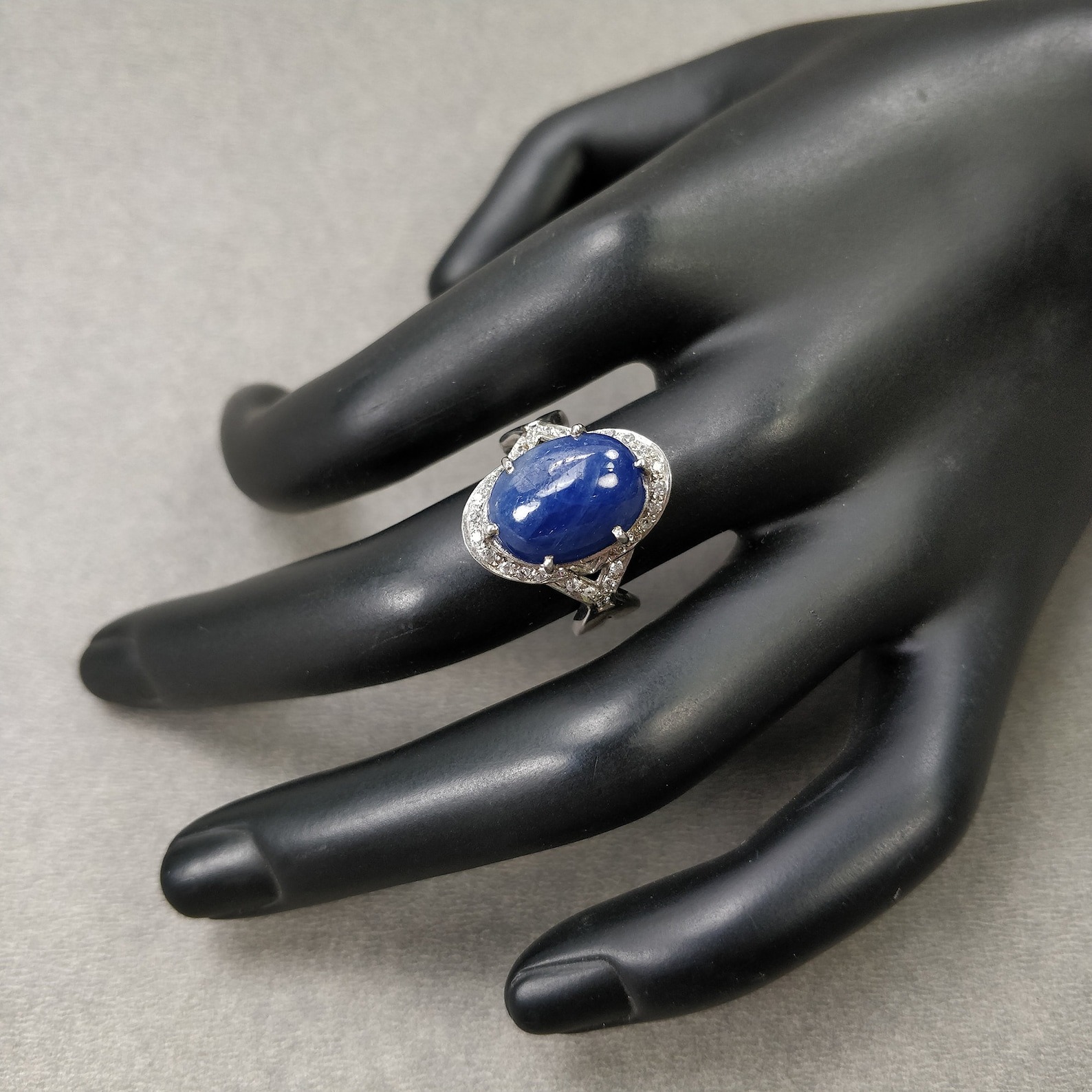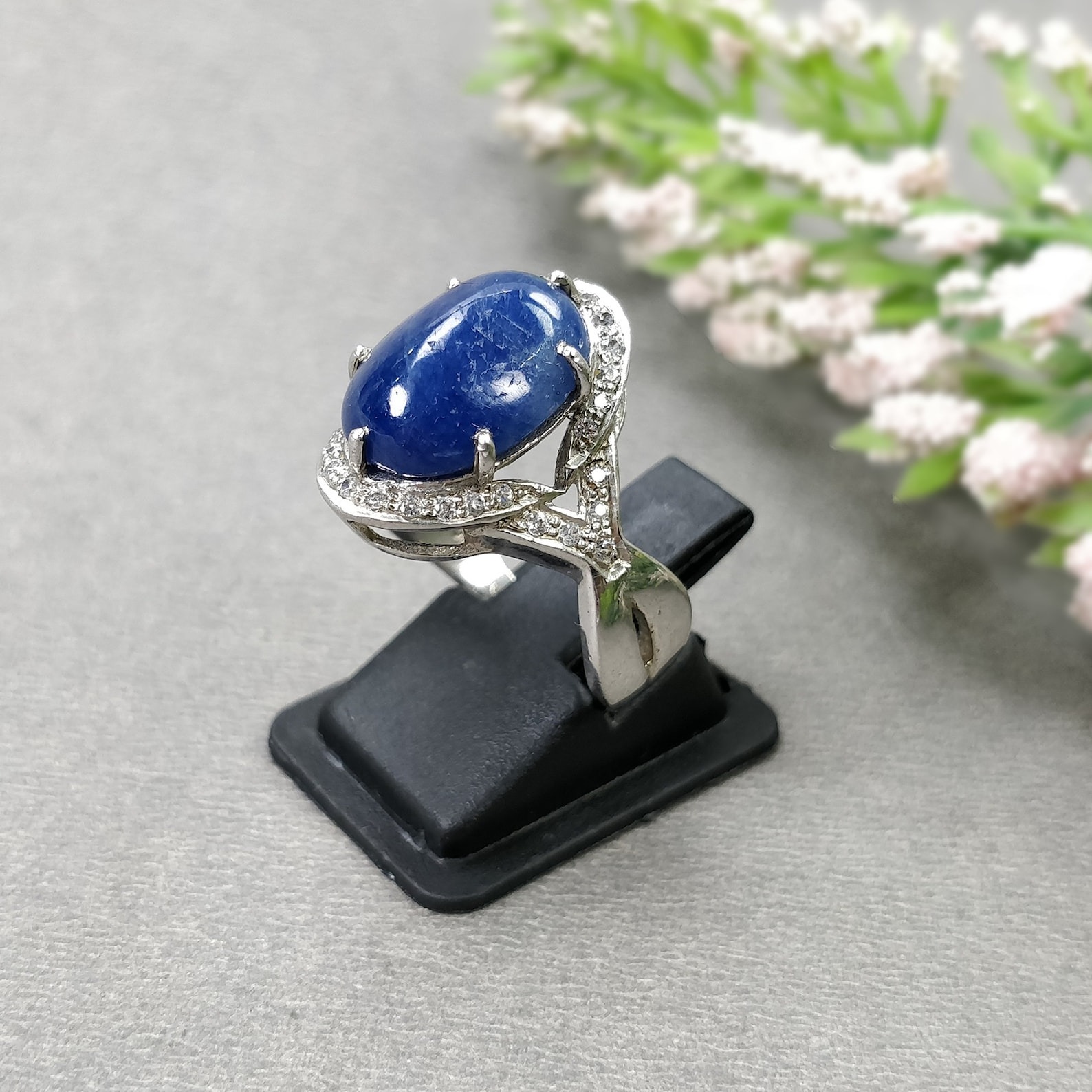 6.37gms Natural Blue Sapphire Silver CZ 925 Sterling Silver Plain Oval Shape Prong Set Ring 7.5 US