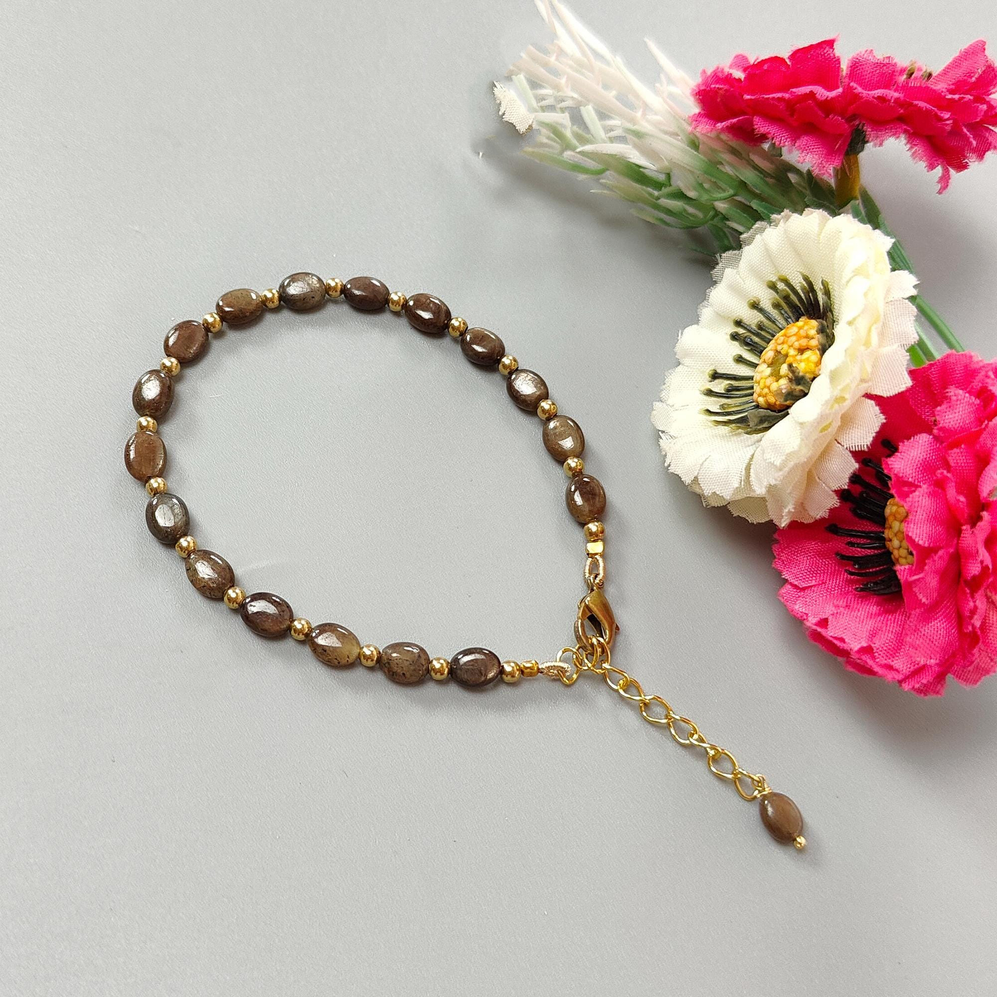 7.19gms Natural Untreated Chocolate Sapphire Beads Bracelet Oval Shape Plain Brass Bracelet 7*5mm 6.50″